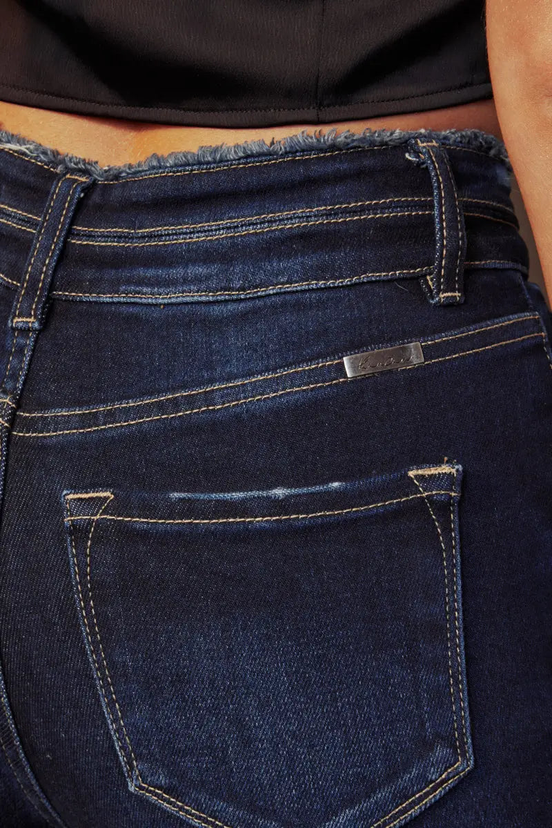 Refresh availabilityElongate your legs and accentuate your body with this pair of high-rise flared jeans featuring distressed detailing, whiskering, fading, unfinished hems, double button closure with a zip fly, contrast stitching, and a 5-pocket design.