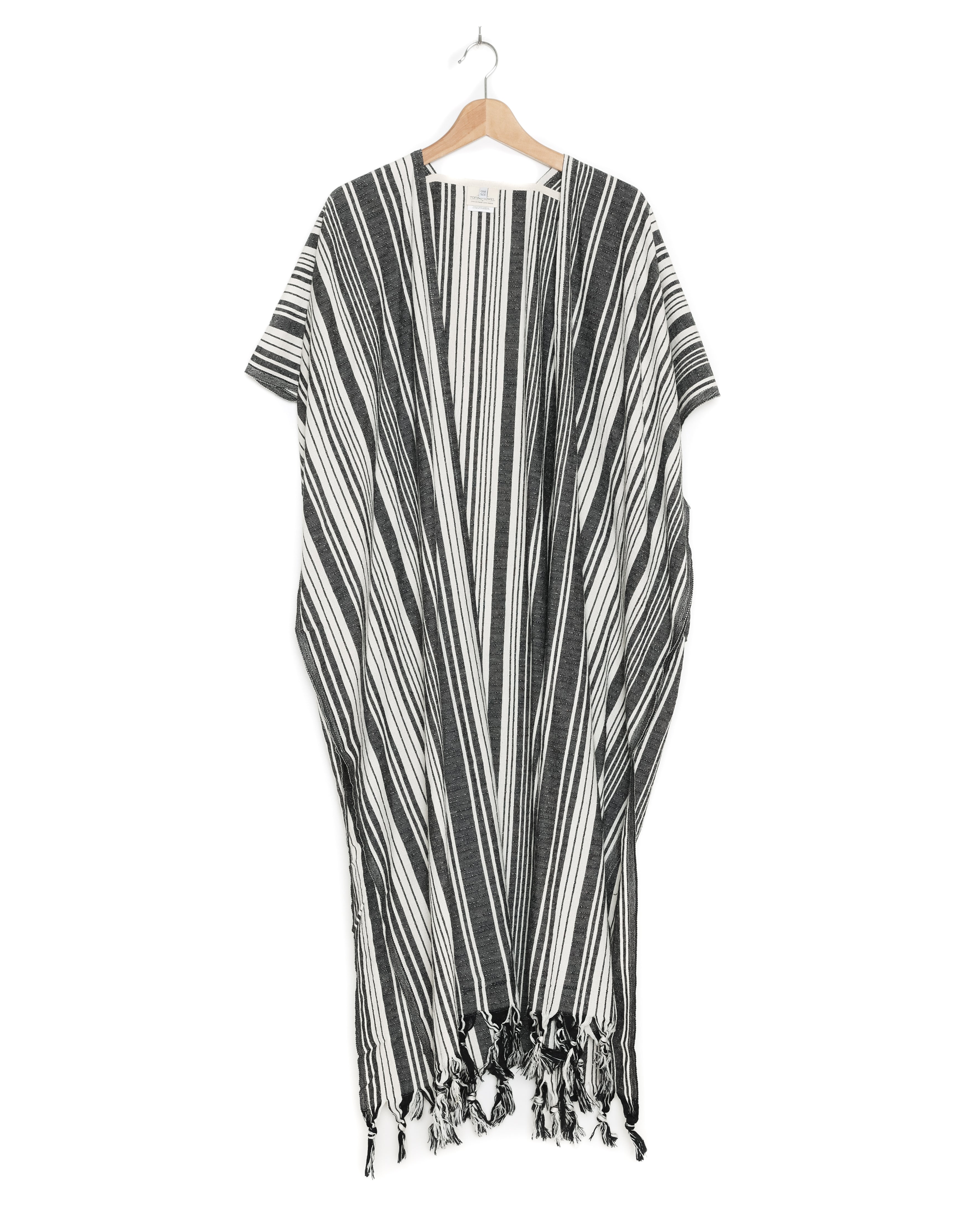 The Grace Coverup is made from Tofino Towel's signature Turkish cotton. Featuring a traditional Turkish stripe, light weight woven material, high side slits, and a tassel fringe. This premium coverup is sized to be worn as a relaxed fit.